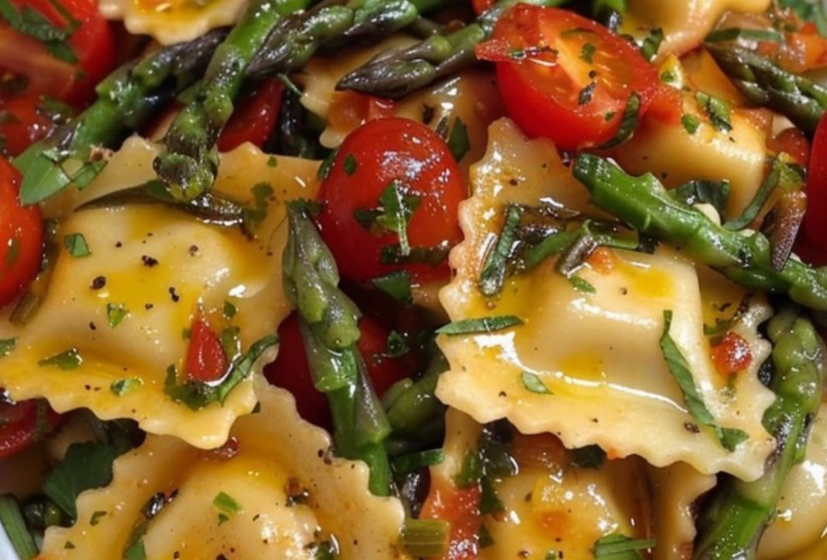 Ravioli is one of Italy’s most cherished pasta dishes, with origins tracing back to the 14th century. Traditionally, ravioli were filled with cheese, meat, or vegetables, often served in broth or with light sauces. This dish showcases the best of Italian cooking — simple ingredients transformed into something extraordinary. Over time, ravioli has spread worldwide, adapting to local tastes. The combination of fresh herbs, garlic, tomatoes, and asparagus in this recipe adds a Mediterranean flair while keeping the authentic Italian spirit alive. It’s the perfect balance of rustic tradition and modern freshness, offering comfort food that still feels light and vibrant.