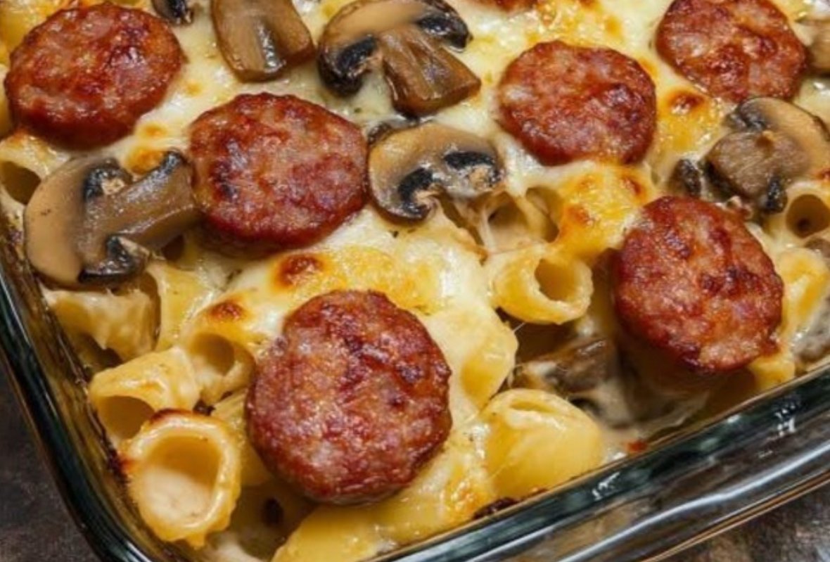 This oven-baked pasta gratin is surprisingly easy to prepare yet looks impressive on the table. The recipe allows flexibility: you can use penne or rigatoni, swap mushrooms for spinach, or adjust the sausage type to suit your taste. It’s also a one-dish meal that combines protein, vegetables, pasta, and cheese, making it convenient for weeknight dinners or weekend gatherings. The creamy, cheesy topping melts beautifully in the oven, creating a golden crust that appeals to both adults and kids. Even beginner cooks can follow the steps to achieve restaurant-quality results at home. The combination of savory sausage, tender pasta, and earthy mushrooms ensures every bite is rich, flavorful, and comforting.