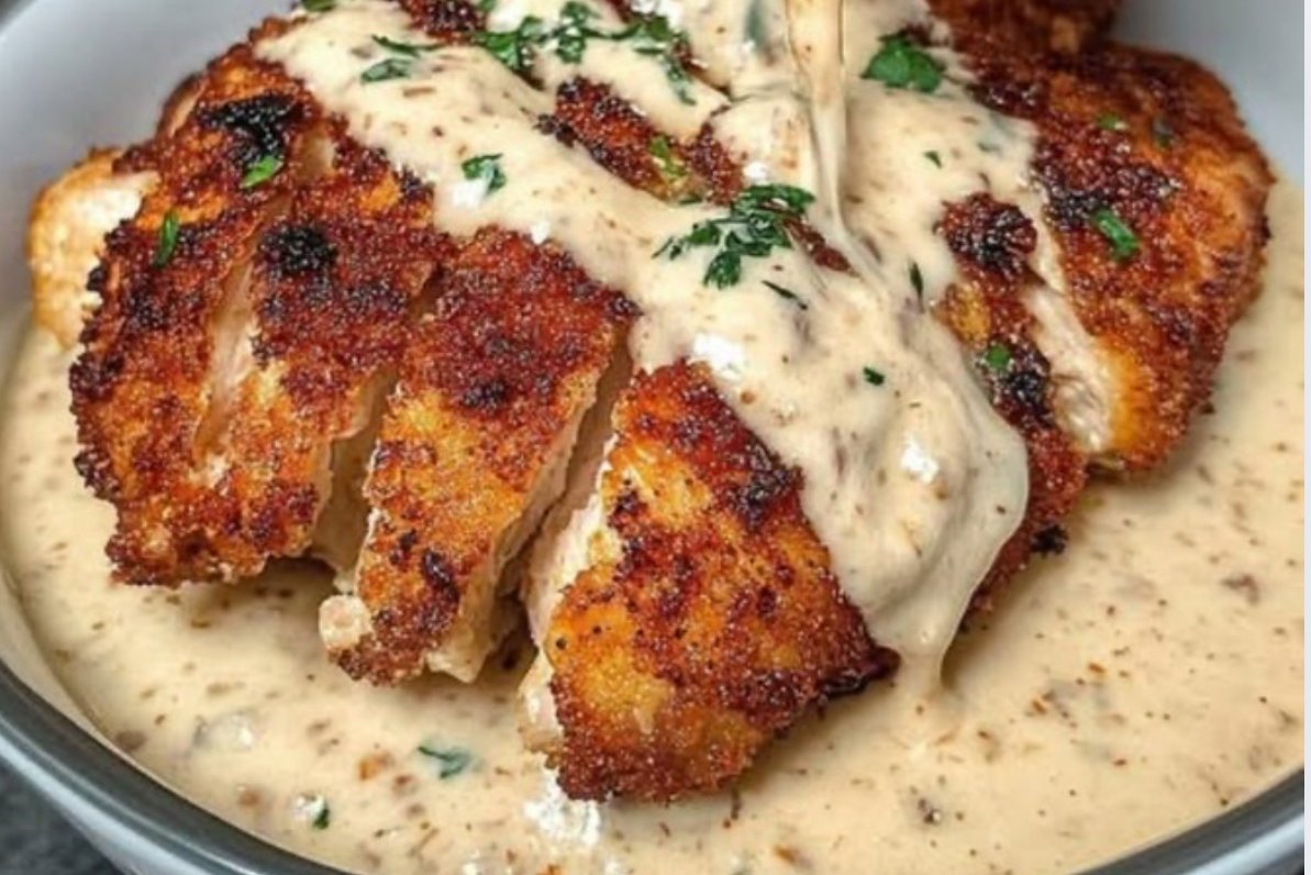 Parmesan Crusted Chicken with Creamy Garlic Sauce is one of those dishes that feels like it came straight from a fine dining restaurant, but it’s surprisingly simple to make at home. With crispy chicken coated in Parmesan and flour, topped with a buttery garlic cream sauce, this recipe delivers comfort food with a gourmet twist. Whether you’re cooking for family dinner or entertaining guests, this dish is guaranteed to impress.